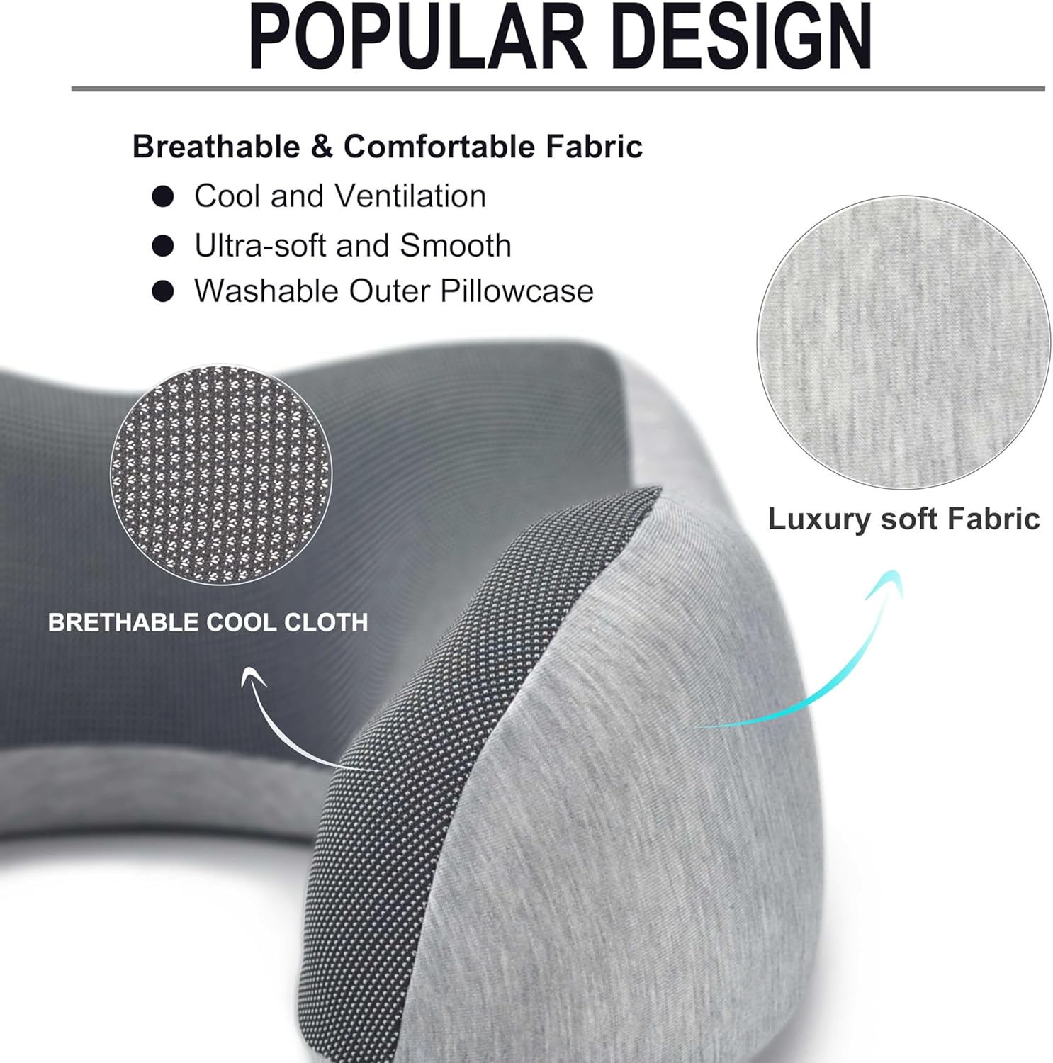napfun Neck Pillow for Traveling, Upgraded Travel Neck Pillow for Airplane 100% Pure Memory Foam Travel Pillow for Flight Headrest Sleep, Portable Plane Accessories, Light Grey