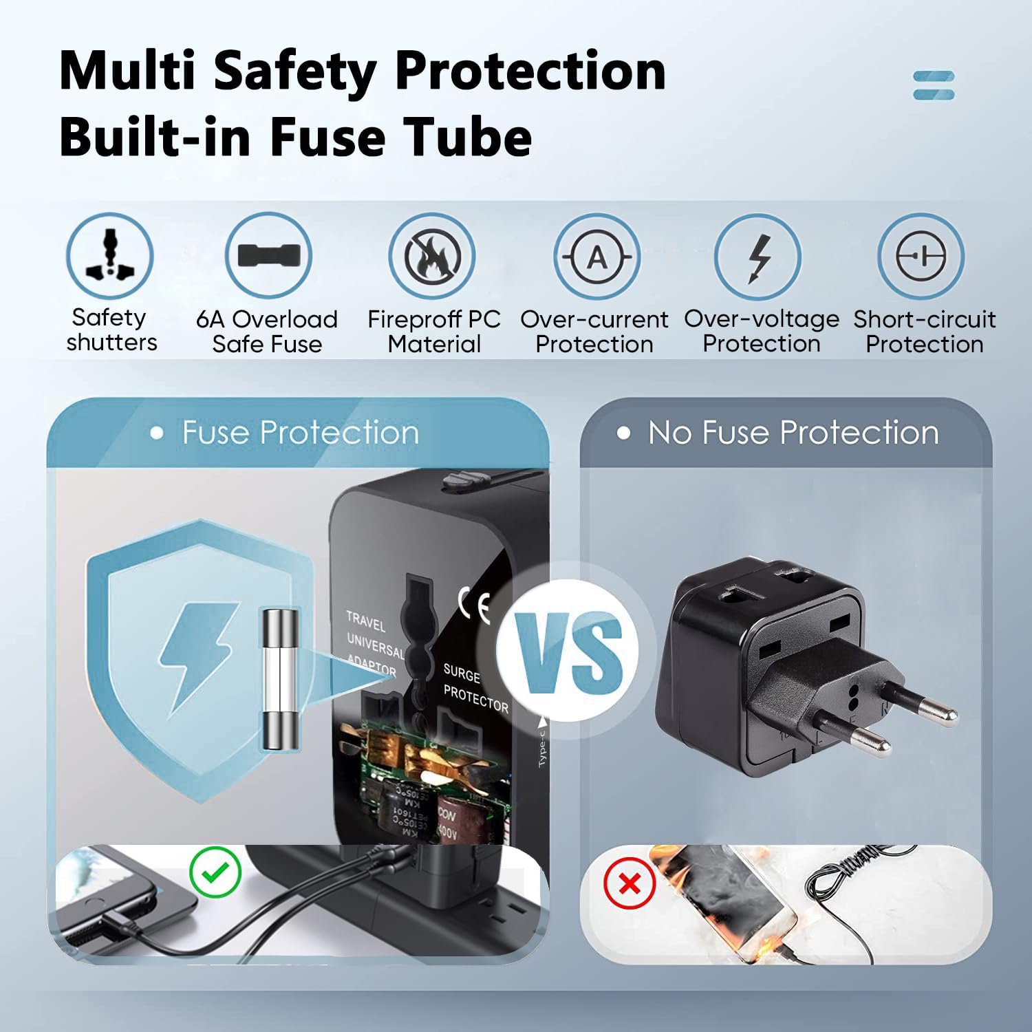Equipped with both USB-C and USB-A charging ports, this adapter allows you to charge multiple devices simultaneously, including smartphones, tablets, laptops, and more. The sleek black design adds a touch of sophistication to your travel accessories.